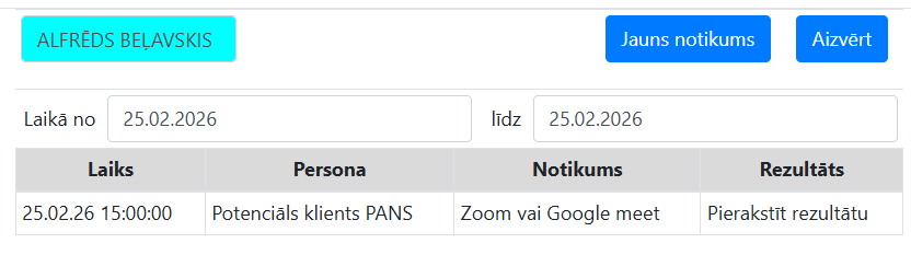 Ja vēlas paskatīties savus notikumus lielākā laika diapazonā tad ailes laika no līdz ievada sev vēlamos datumus .