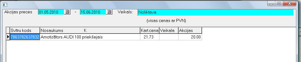 Tāpat ar taustiņa F3 palīdzību var izvēlēties konkrētas preces un noteikt kādas būs norādītajā laikā periodā pārdošanas cenas