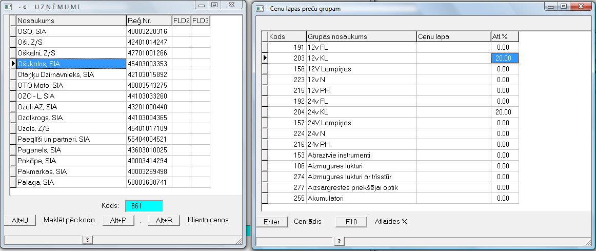 pārdošanas cenas. Strādā Nospiežot Alt+R uz konkrētā uzņēmumā.