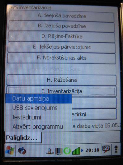 ietver sevī datu apmaiņas izvēlni. Ja izvēlas datu apmaiņu un