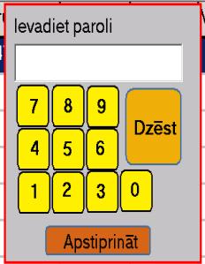 Ja kaut kādu tehnisko iemeslu dēļ nav iespējams saņemt Bruto vai Taras svaru automātiski, uz ekrāna ir redzamas sarkanas pogas Svērt manuāli, kas palīdz ievadīt šos svarus ar uz ekrāna parādījušos klaviatūru, kas tika izmantota paroles ievadam..