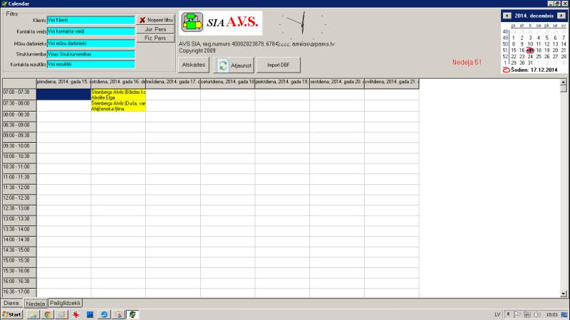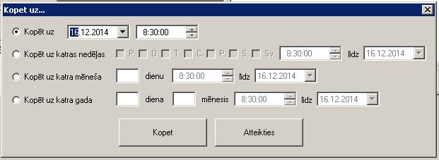 Kontakta, apkopes notikuma ievads notiek sekojošā veidā. Stāvot uz kalendāra kādas dienas laika pēc Ins taustiņa nospiešanas jāparādās notikuma kartiņai: