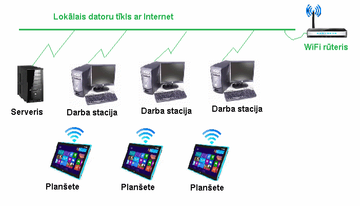 AVS ir jāizstrādā Programma, kas strādātu Uzņēmuma lokālajā datoru tīklā un mobilajās ierīcēs (planšetēs), kā tas ir parādīts shēmā: